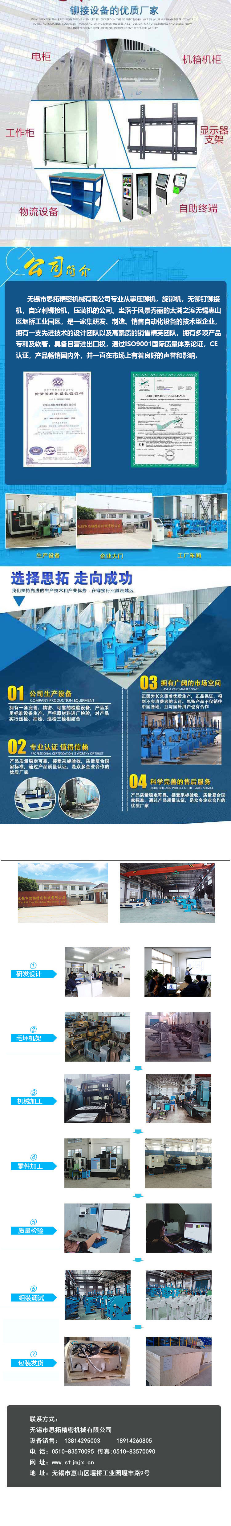 無錫思拓成立于2009年,一直是堅持自主研發(fā),3000多平方的生產(chǎn)廠房,多位技術(shù)人員更是行業(yè)精英人才,自成立以來,公司共獲得多項專利和軟件著作權(quán),具備自營進出口權(quán),并且有自己專門的研發(fā)團隊,公司領(lǐng)導(dǎo)更是下大成本采購多臺高尖端加工設(shè)備,用來加工液壓壓鉚機和伺服液壓壓鉚機,進口的加工中心,超大龍門式機床,多臺數(shù)控車床和加工中心,檢測設(shè)備齊全,檢驗要要嚴格,所以才有那么多的客戶選擇無錫思拓壓鉚機,建立長長期合作關(guān)系,想要獲得更多壓鉚機資訊,歡迎各界人士來電洽談
