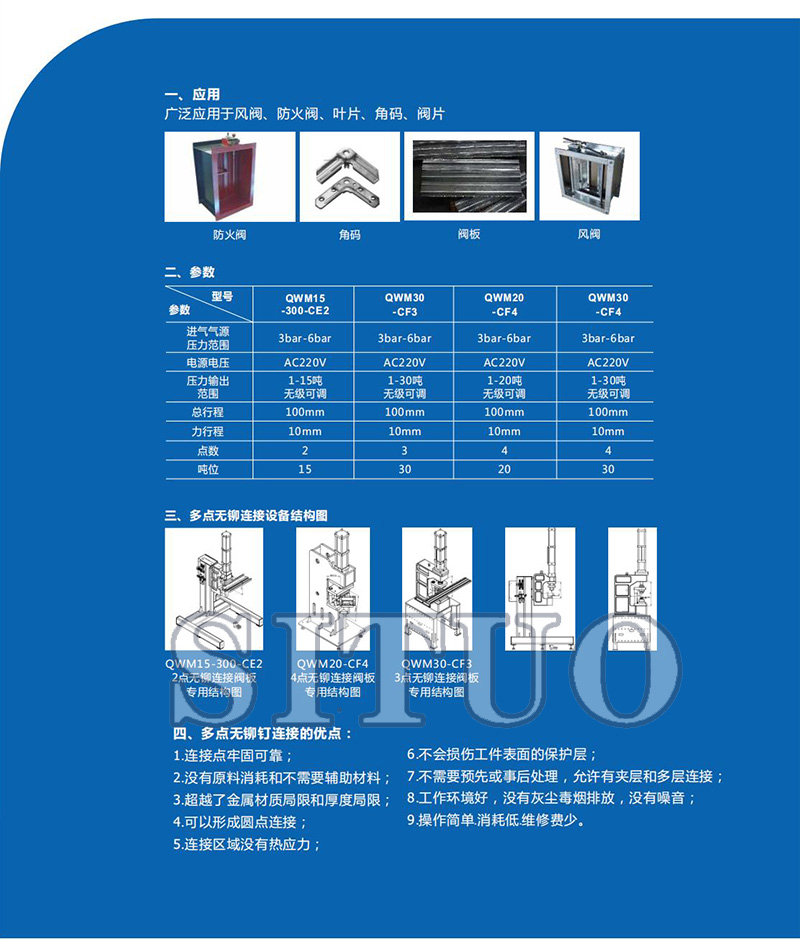從動(dòng)力源來分:可分為氣動(dòng)無鉚釘鉚接機(jī),液壓式無鉚釘鉚接機(jī),也有伺服無鉚釘鉚接機(jī),當(dāng)然無錫思拓還提供定制各種非標(biāo)自動(dòng)化無鉚釘鉚接機(jī)生產(chǎn)線。
