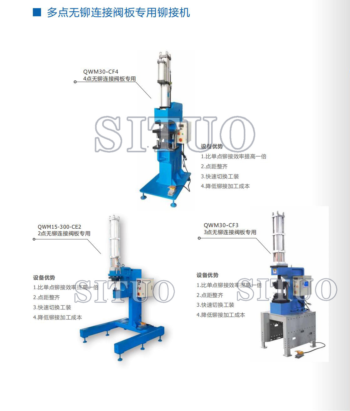 從無鉚釘鉚接機(jī)的單次鉚接點(diǎn)位數(shù)量來分那分的可就更多了,有單點(diǎn)無鉚釘鉚接機(jī),雙點(diǎn)無鉚釘鉚接機(jī),3點(diǎn)無鉚釘鉚接機(jī),4點(diǎn)無鉚釘鉚接機(jī),8點(diǎn)無鉚釘鉚接機(jī),12無鉚釘鉚接機(jī),16點(diǎn)無鉚釘鉚接機(jī)......