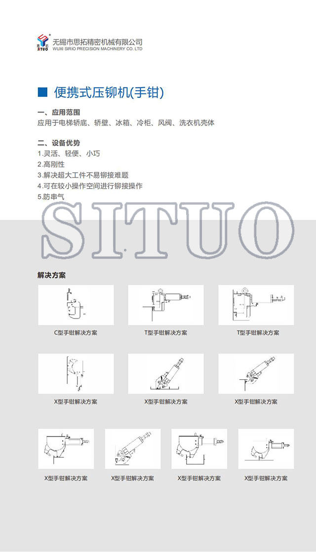 無錫思拓手持式無鉚釘鉚接設(shè)備-TOX手鉗式鉚接機,可以細分為多種手鉗結(jié)構(gòu),有C型手鉗無鉚釘鉚接機,Y型手鉗無鉚釘鉚接機,X型手鉗無鉚釘鉚接機,MINI型手鉗無鉚釘鉚接機.